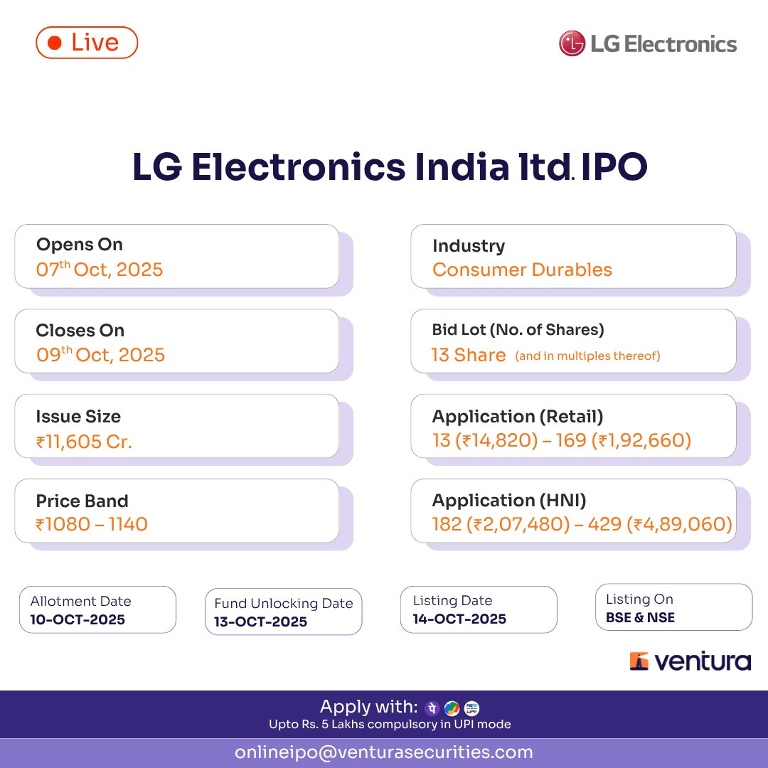 Apply for LG Electronics India IPO via Ventura: Ventura