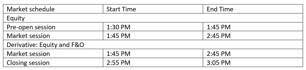 - Call and Trade facility will be available between 1:15 PM to 3:05 PM.